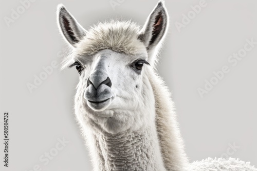 © AkuAku, Obraz premium Lama glama in front of a white background. Generative AI