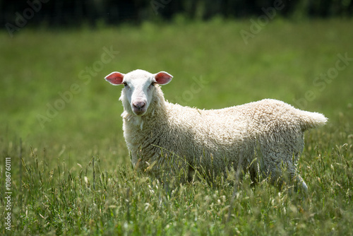 Fototapeta premium lamb in lush green grassy field