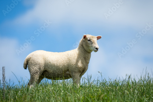 © Nathan McClunie, Obraz premium lamb in lush green grassy field