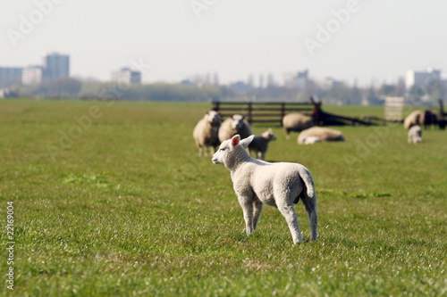 © Marianne de Jong, Obraz premium Lamb in the meadow