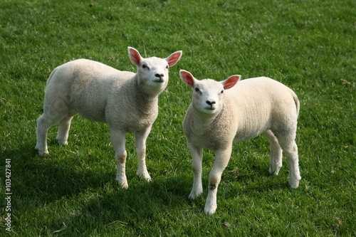 © breedfoto, Fototapeta premium lamb in the meadow looking up