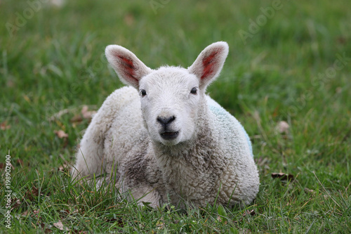© UniquePhotoArts, Obraz premium Lamb sitting in a field