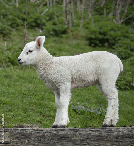 © Jean, Obraz premium Lamb standing on hard wooden surface
