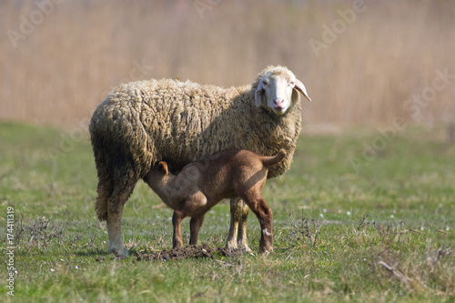 © Geza Farkas, Fototapeta premium Lamb sucking the sheep
