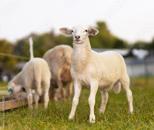 Naklejka premium Lamb that is standing on a field