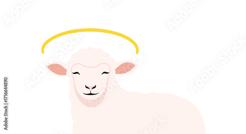 © Bruno Stock, Fototapeta premium Lamb with halo Christian religious symbol Minimalist vector illustration Isolated on white background