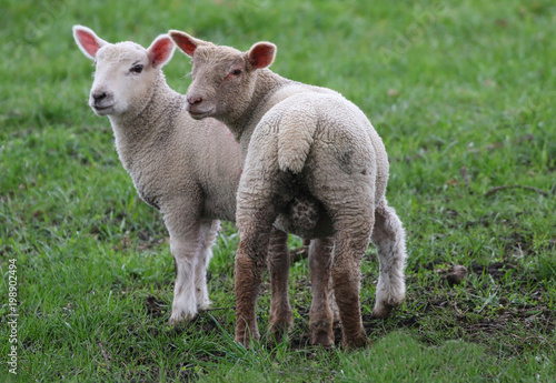 © UniquePhotoArts, Obraz premium Lambs in a field