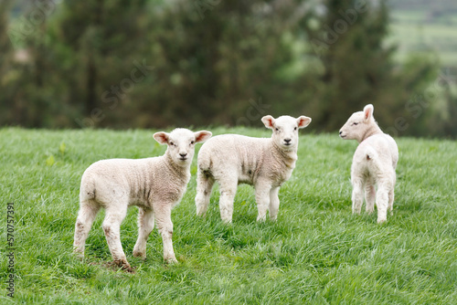Fototapeta premium Lambs in a green field in Snowdonia, Wales, UK