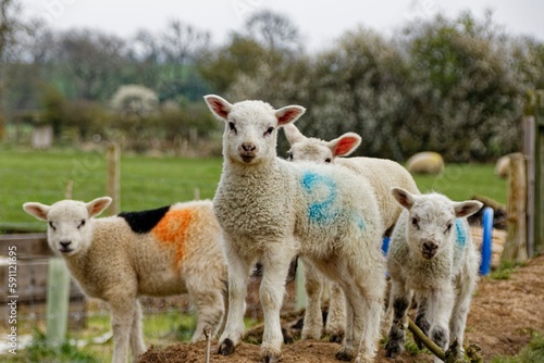 Fototapeta premium Lambs playing in a field in the Spring