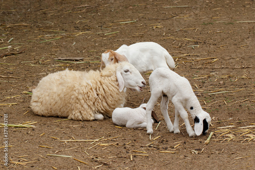 © Thongtawat, Fototapeta premium Lambs With Mother Sheep