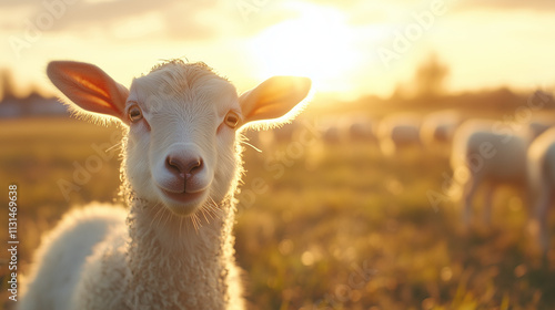 Obraz premium Lamm auf der Wiese schaut neugierig in die Kamera