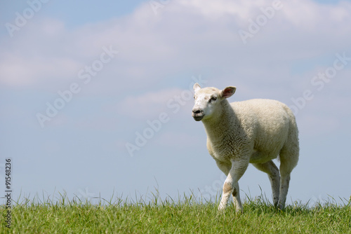© Caro, Obraz premium Lamm läuft auf der Wiese