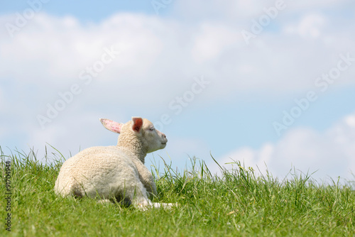 © Caro, Naklejka premium Lamm liegt auf der Wiese
