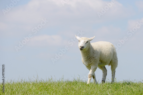 © Caro, Obraz premium Lamm steht auf der Wiese