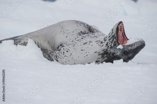 © Silver, Fototapeta premium Lampart morski odpoczywa na lodzie