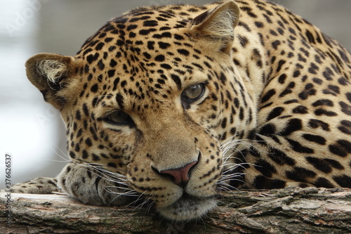 Naklejka premium lampart, zwierzę, kot, jaguar, drapieżnik, dziki, ssak, fauna, Natura, ogród zoologiczny, kotowate, Panthera, safari, Panthera pardus, futro, płowy, duży, plama, drapieżnik, niebezpieczny, polowanie