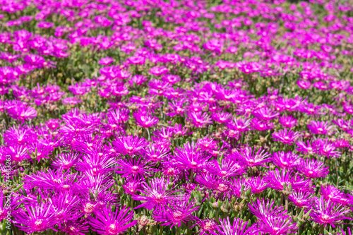 Naklejka premium Lampranthus magenta flowers with succulent leaves in fully bloom