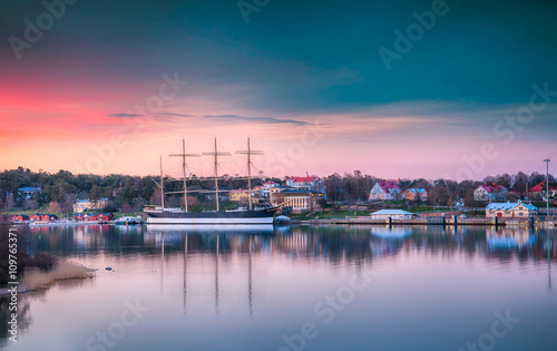 © dikana87, Fototapeta premium Åland Islands, Baltic Sea Pommern ship at beautiful sunset