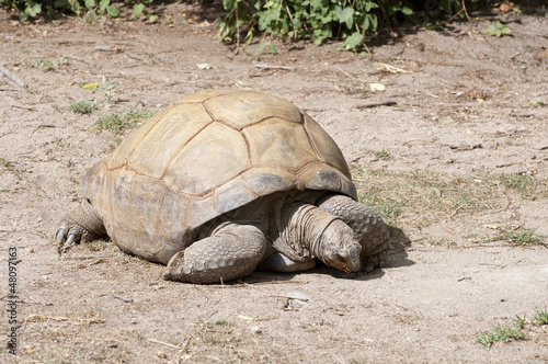 © ihervas, Obraz premium Land Tortoise grazing on soil