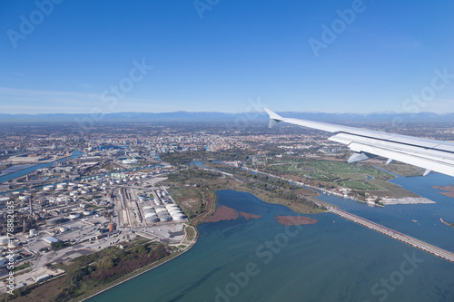 Obraz premium Landeanflug Flughafen Venedig Marco Polo