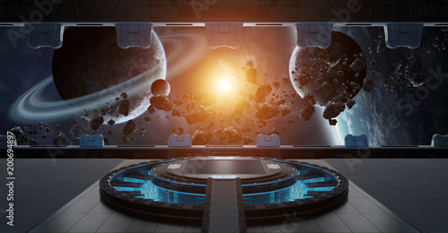 © sdecoret, Naklejka premium Landing strip spaceship interior 3D rendering elements of this image furnished by NASA