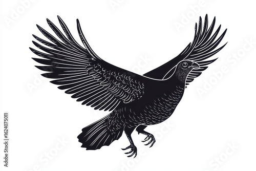 © Amrita, Obraz premium Landing turkey icon vector illustration isoleted on white background in black silhouette complex photo .