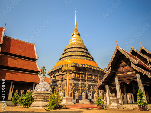 Fototapeta premium Landmark wat thai, sunset in temple Chiang mai Thailand