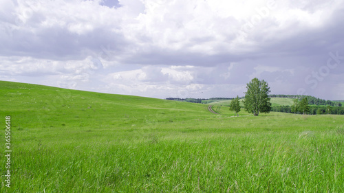 © Лозовая Людмила, Fototapeta premium landscape a country road on the side of a green hill and the sky with dark clouds