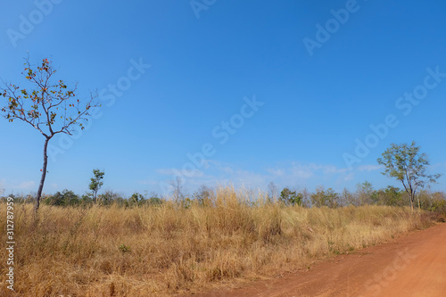 © toeytoey, Obraz premium Landscape and forest with blue sky.