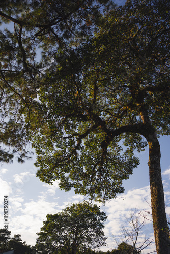 © tickcharoen04, Obraz premium landscape and travel concept with sunlight and large tree on mountain