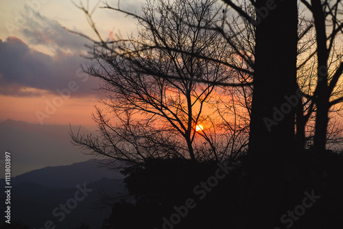 © tickcharoen04, Fototapeta premium landscape and travel concept with sunrise with forest on mountain