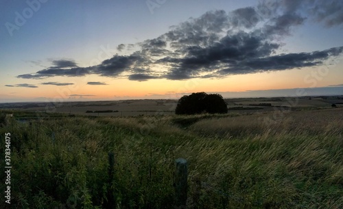 © Mathieu, Fototapeta premium landscape at sunset at avesbury hill england