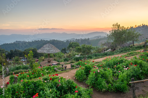 Obraz premium Landscape attractions sunset twilight beautiful at mon jam,chiang mai