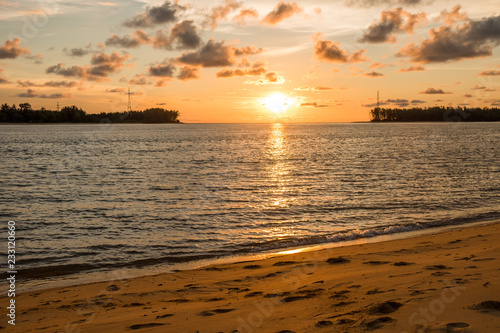 © Pangzz, Naklejka premium landscape background evening scenery with sunset and have sunlight reflection on sea