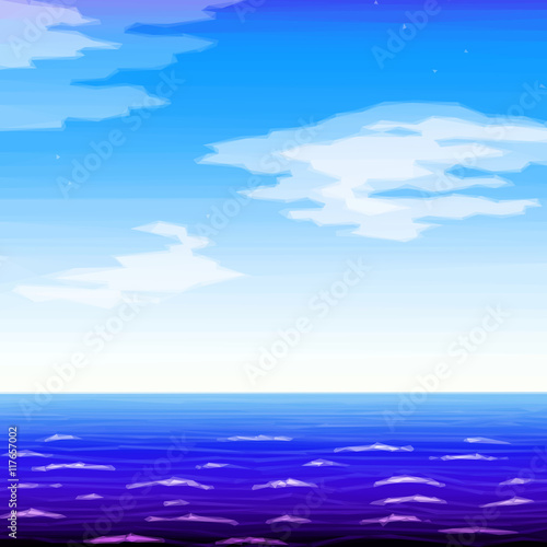 Obraz premium Landscape Background, Sea and Blue Sky with White Clouds. Low Poly...