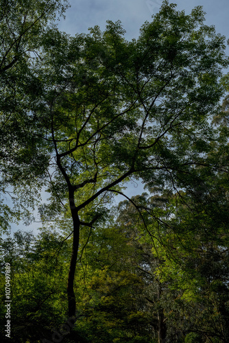 Fototapeta premium landscape background shot of flora and fauna in forest