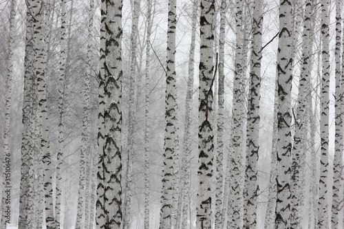 © albert, Obraz premium landscape background with a view of birch trees in winter forest