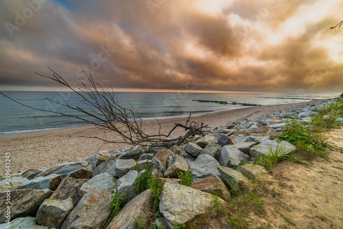 © Artur Golbert, Fototapeta premium landscape by the sea, wood, stones, sand, waves