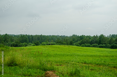 © Сергей Семенов, Fototapeta premium landscape field with hills and forests in summer .