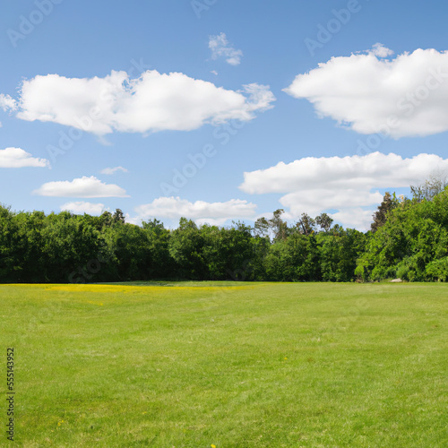 Obraz premium Landscape - grass, trees and sky - generative ai