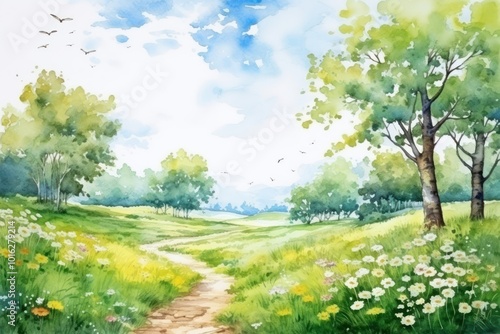 Fototapeta premium Landscape grassland outdoors painting.