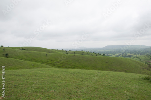 © SMIT VYAS, Obraz premium LANDSCAPE GREEN HILL SLOPE WITH CLOUD