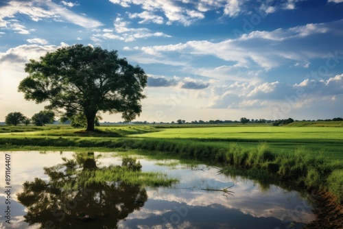 Fototapeta premium Landscape green sky tranquility.