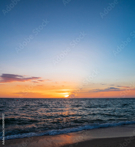 © Singh, Fototapeta premium Landscape horizon viewpoint vertical summer shore sea beach nobody wind wave cool holiday look calm big sunset sky twilight evening on day time nature tropical coast beautiful ocean water travel