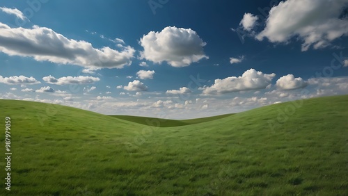 © Phoneutria, Fototapeta premium Landscape image featuring a vast, gently rolling green hill under a clear vibrant blue sky, nature background