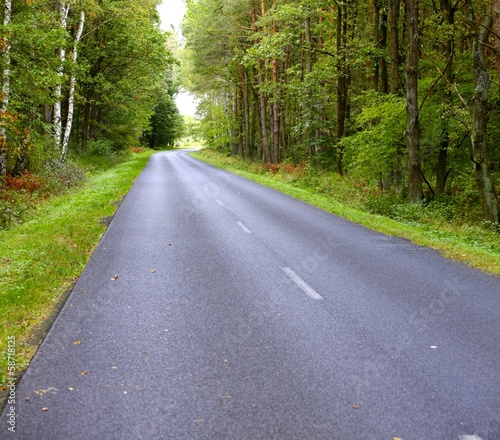 © Voyagerix, Fototapeta premium Landscape in Poland asphalt road in forest early autumn