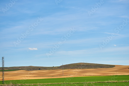 © Nedrofly, Obraz premium Landscape in spring with fields full of brown and green colors