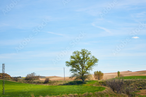 © Nedrofly, Obraz premium Landscape in spring with fields full of brown and green colors