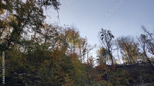 Obraz premium landscape nature background forest autumn summer trees leaves blue sky