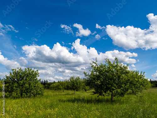 Obraz premium Landscape of a meadow orchard near Brunnthal south of Munich.